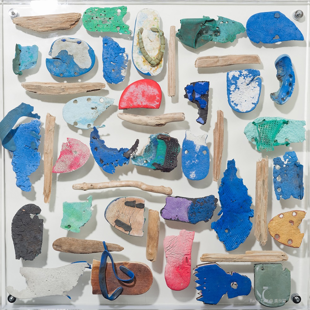 The four sets of artworks are largely composed of materials Rahic.Talif picks up in his daily walk along the shore of the Pacific Ocean in his hometown. The questions Rahic.Talif keeps asking are: where are their owners? What did they see? If those discarded materials have their own will, where would they go? How they want to continue “living”? Rahic.Talif reconstructed those materials into artworks that show the “inconsistency” in visual, aesthetical and cognitional aspects. Through the eyes of those discarded materials, he intends to display different angles for the audience to look and to ask themselves this question: What kind of “beauty” do I see in the ocean?